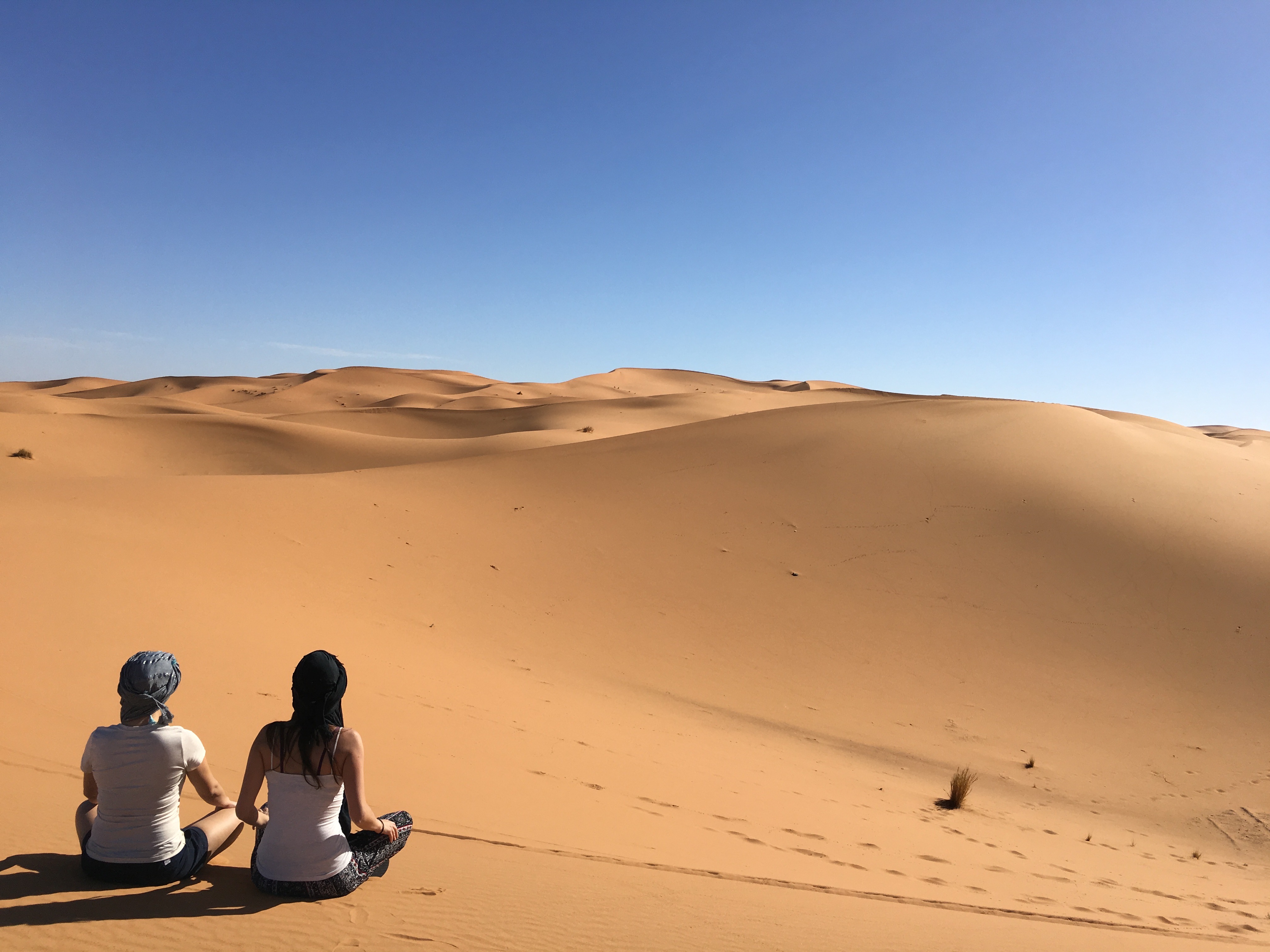 Quand le soleil se lève au matin et que les montagnes deviennent orange scintillant. Quand le vent souffle dans nos oreilles et qu’on ferme les yeux. Quand les gens chantent des chansons marocaines autour du feu, la nuit venue. Quand on lève les yeux et que le ciel est infiniment brillant. On se dit qu’on a besoin davantage de quiétude dans la vie.